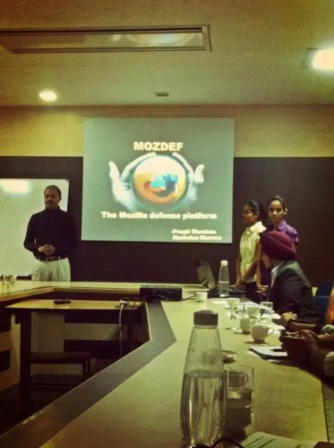 . @sastrytumuluri introducing @PragtiC @KeshvicaS from @dsdinfosec. They present #mozdef @ null meet CHD @0x7eff
