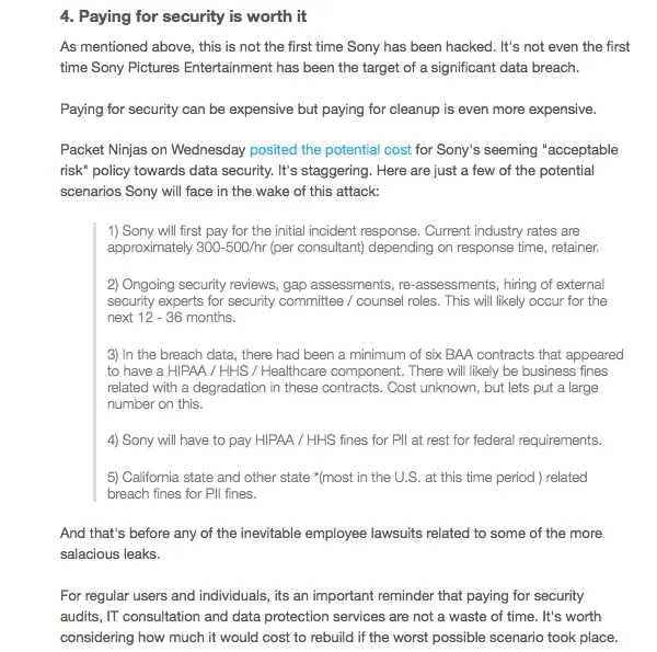 4 #security takeaways from the epic Sony hack http://t.co/DbLrjrHPRO via @mashable http://t.co/9ZeW2nybhQ