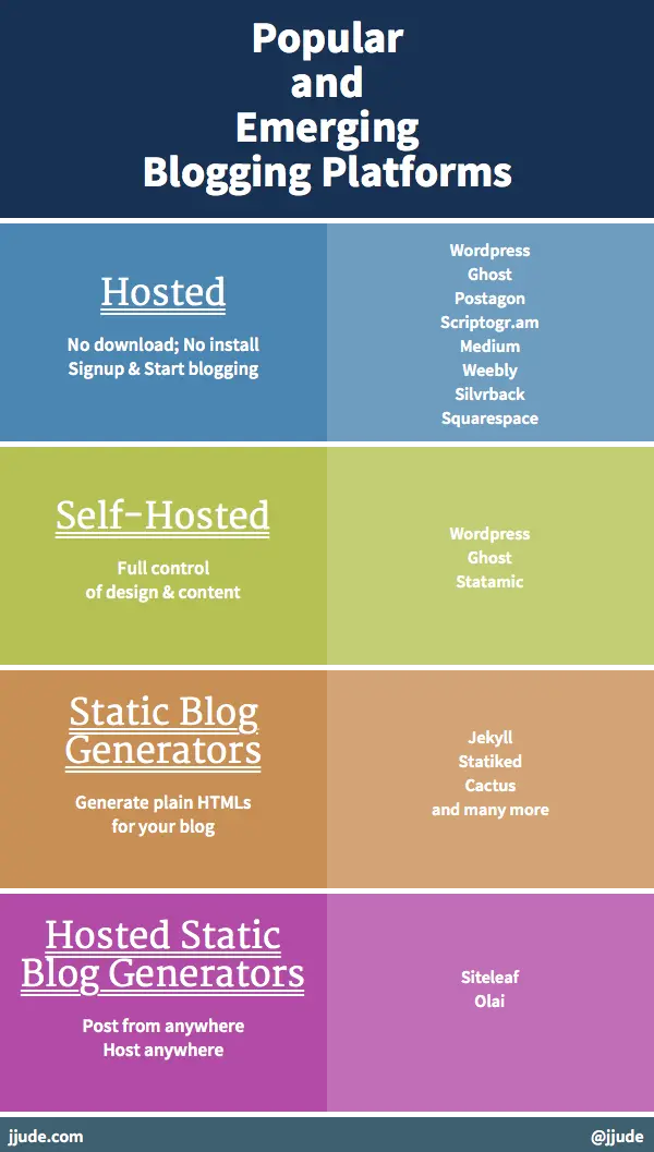 Roundup of popular & emerging blogging platforms by @jjude via @SlideShare