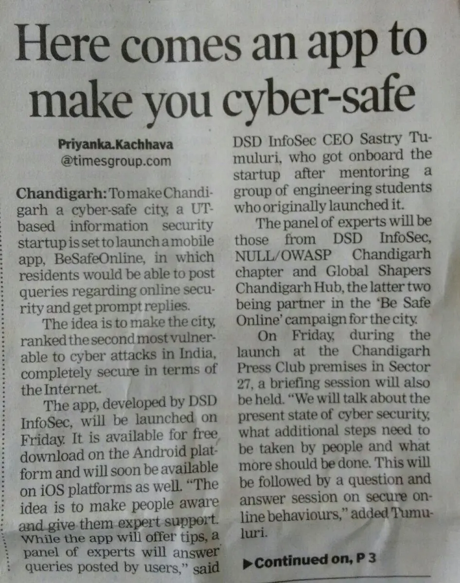 Today @dsdinfosec is releasing a #BeSafeOnline app. Coverage of the app in today’s newspaper.