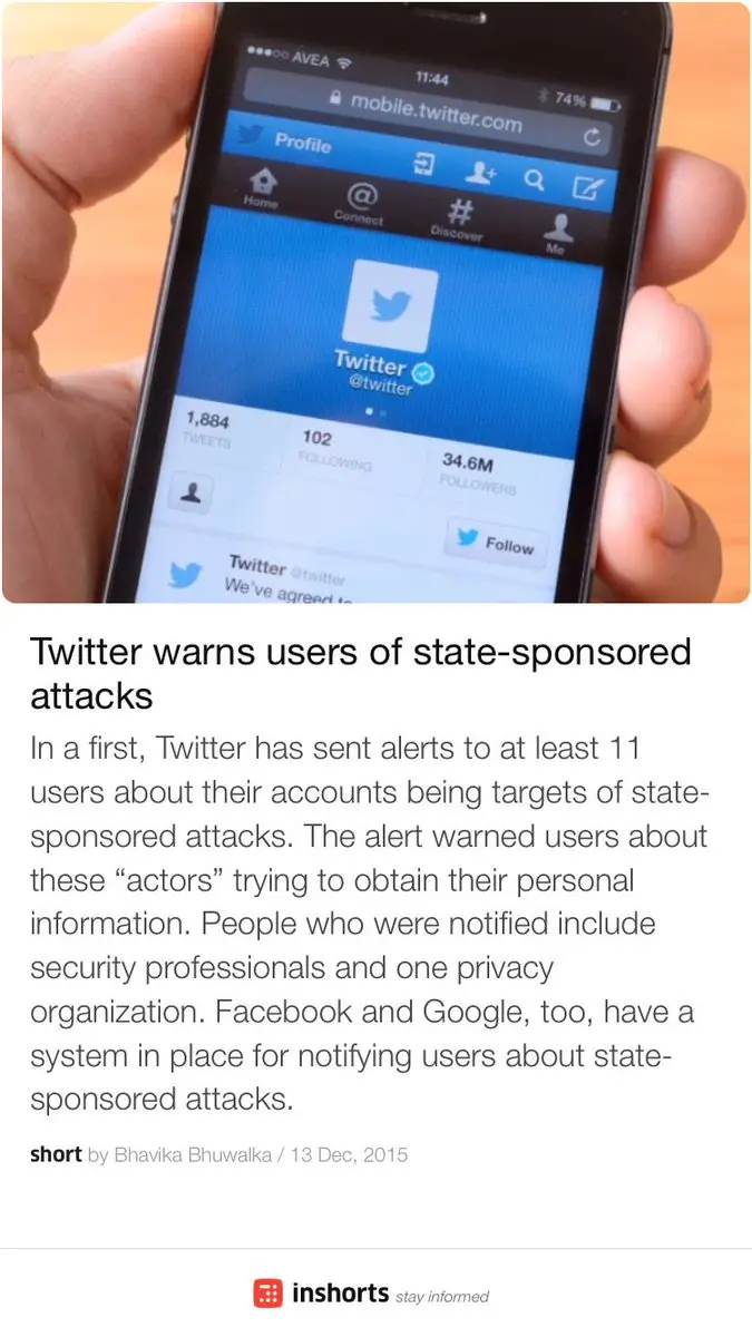 Twitter warns users of state-sponsored attacks https://t.co/wDeBHf5hHT -via @inshorts https://t.co/y9sDTaTQIj