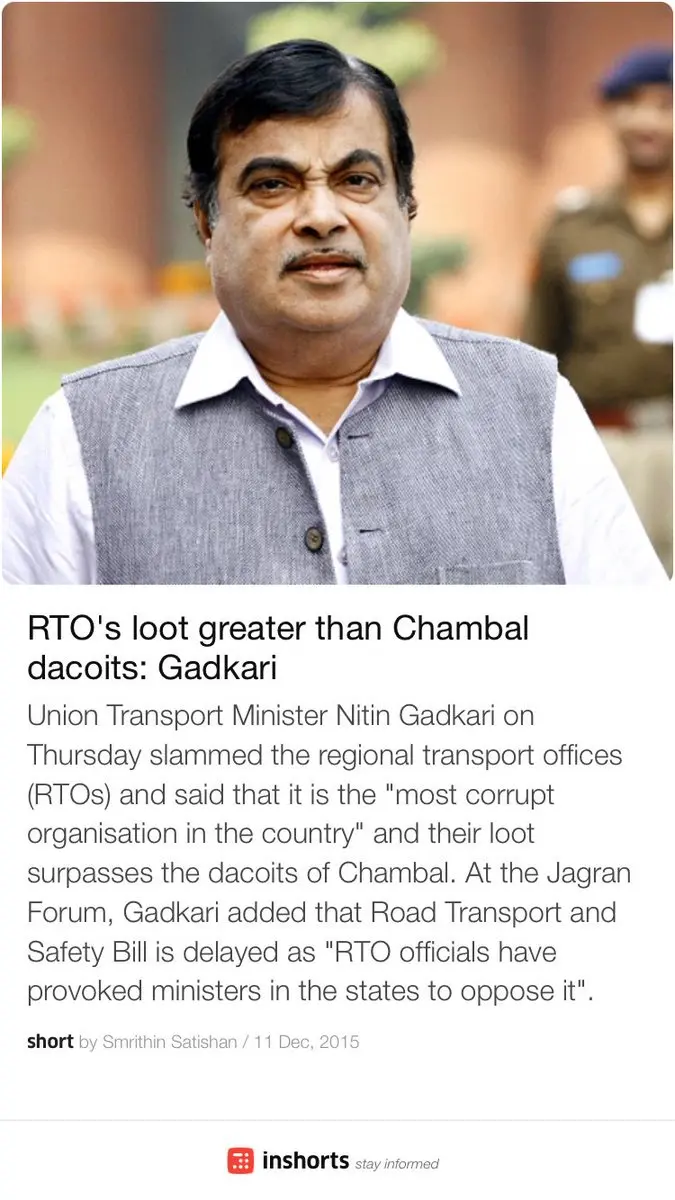RTO's loot greater than Chambal dacoits: Gadkari https://t.co/gVheCJNOxF -via @inshorts Do something abt it then https://t.co/f6Lib14uTv