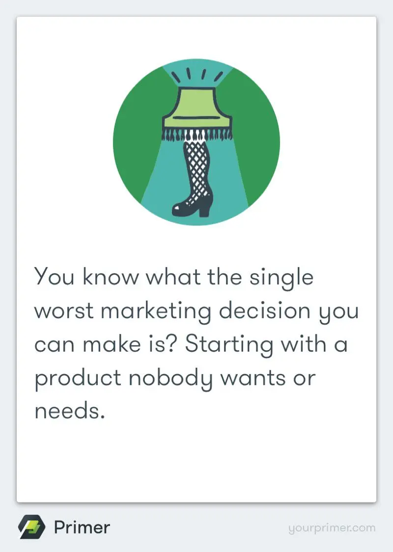 What's the worst startup decision: building a product no one wants. @mijustin: hv u seen Google Primer app? http://t.co/XONSD2ixmd