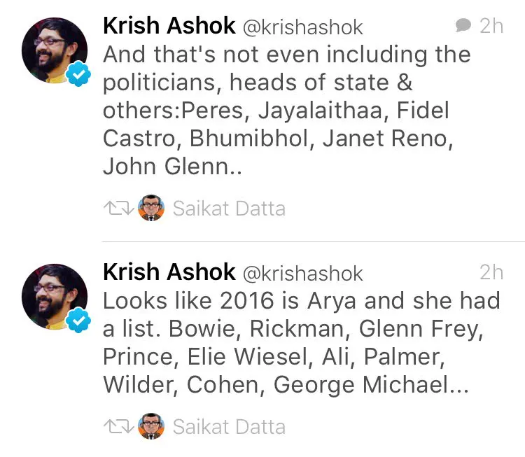 Hold your words @krishashok. There are still 4 more days. Don’t know who else will leave this world. https://t.co/R3MOy8q9Uf