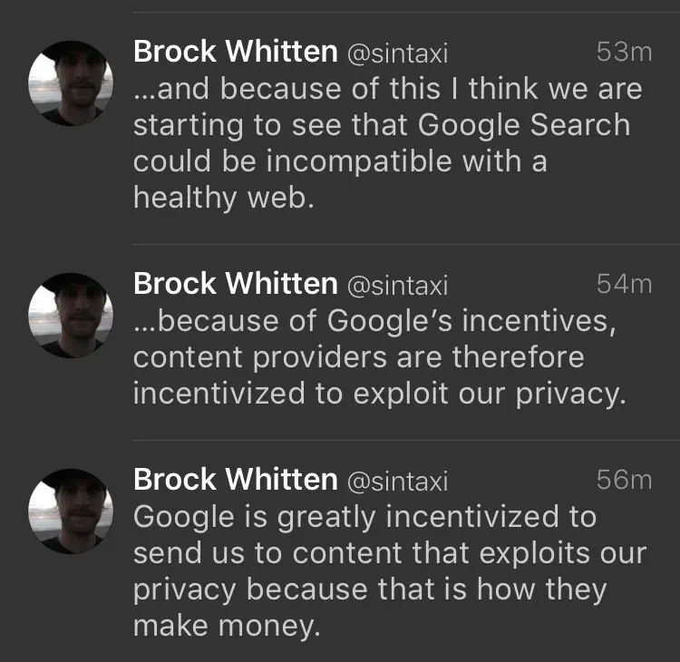 Why google search is incompatible with healthy web by @sintaxi https://t.co/AzK40nypiV