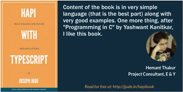 Sat down and completed first chapter of my @hapijs with @typescriptlang book. You can read it here: https://t.co/jRQDb1z15o. Any comments?