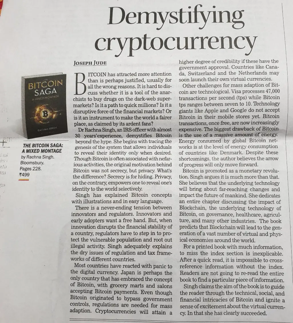 I wrote a book review of "Bitcoin Saga" book for Chandigarh Tribune. Read it here online: