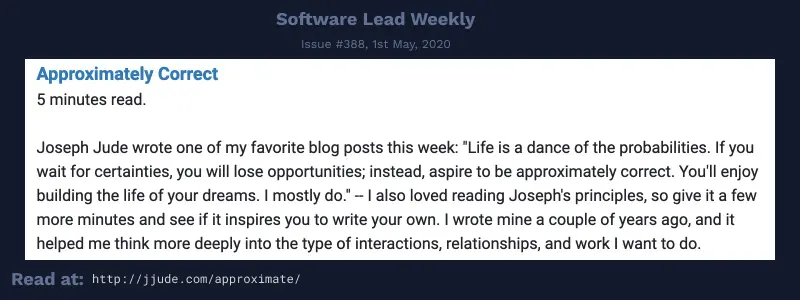 Thank you @orenellenbogen for including Approximately Correct (https://t.co/wOdVRj20jE) on the latest SLW newsletter. A pleasant surprise for a long time reader to see his own article in the newsletter. 🙏