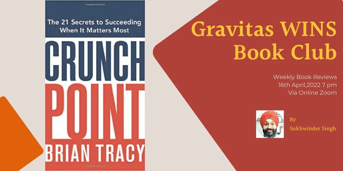 Today at 7 pm, @singhtechnical will review "Crunch Point" by @BrianTracy Don't forget to join @GravitasWins book club here:
