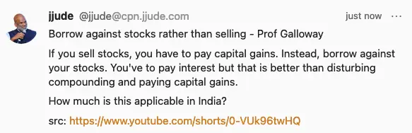 Invest • Borrow against stocks • Die - Prof @profgalloway How much of this is possible in India? Can you borrow against stocks? How much is interest rate for this?