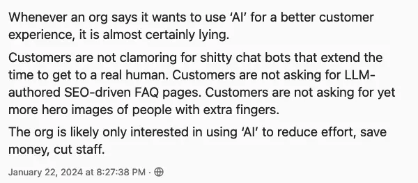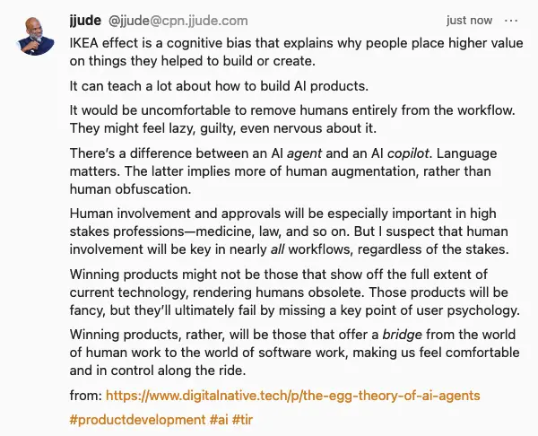 How to build AI products? Don't remove humans from the loop. Rather bridge them into the power of AI. Great article from @rex_woodbury. My notes are in the screenshot. Read the entire article: