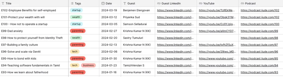 Took sometime today to build all episodes of @GravitasWins as a @baserow table: Now every episode is categorized and all links are easily browsable. Happy about this.