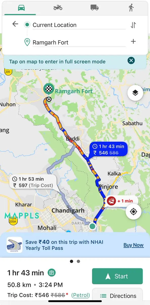 This is what @googlemaps & @MapmyIndia are showing. Google is correct and MapMyIndia is wrong. Not by small margin https://t.co/vAvL4XE6dN