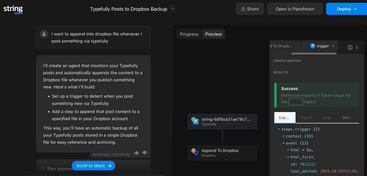 Feeling super happy after seeing an AI chatbot successfully help finish a task. I use Typefully to post on social media and love storing what I've posted, as I use social media as a commonplace for notes. Yesterday, I tried using @zapier AI for the same purpose with the same… https://t.co/w9N0iADES3