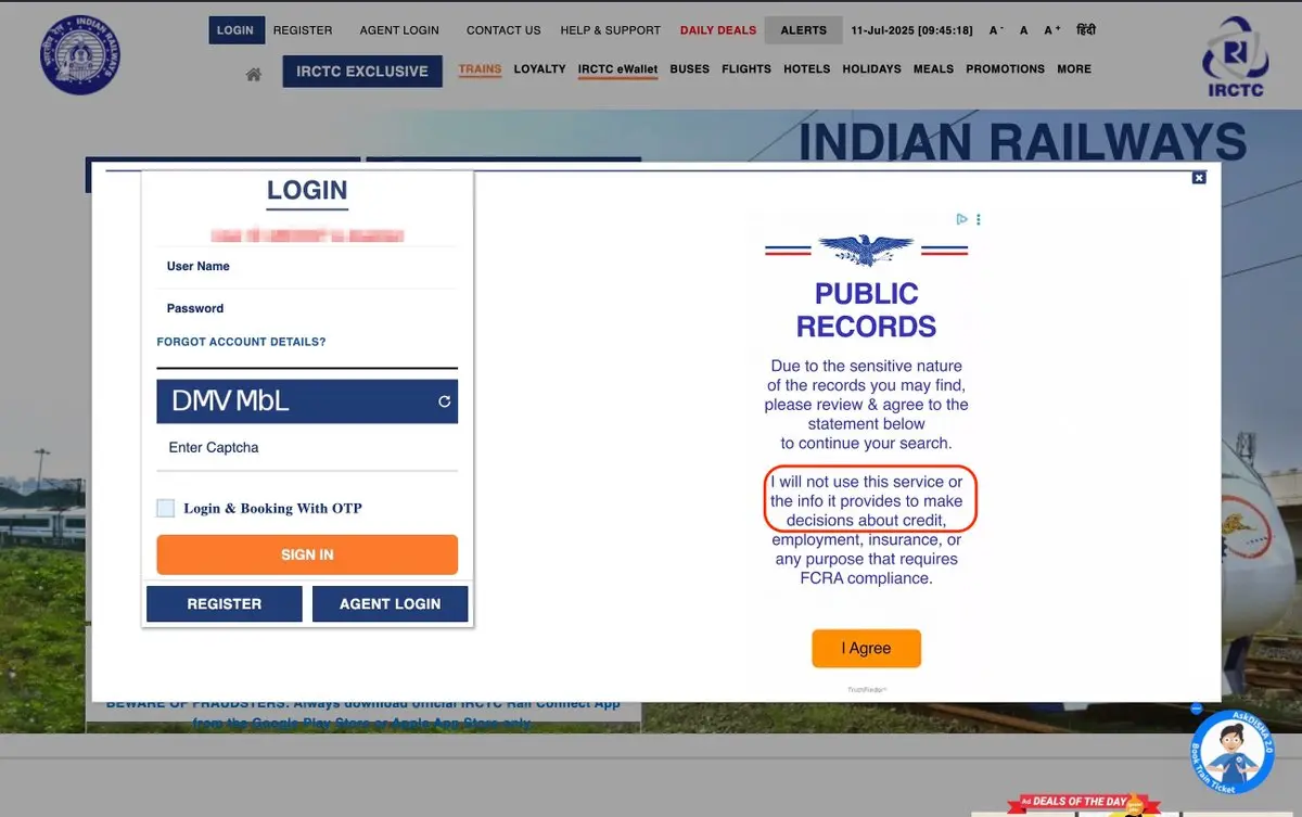 @IRCTCofficial serves ads on login page. Since there was discussion about Aadhaar, I thought this is part of IRCTC and I have to agree to it and I clicked. Only later I realized this is ad. This is not right. Hope irctic either stop serving ads or changes types of ads https://t.co/m3OVv6wjwE