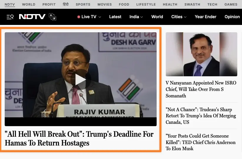 I don't know why @ndtv would put EC photo for Trump's warning to Hamas. May be EC is issuing a threat to Indians?