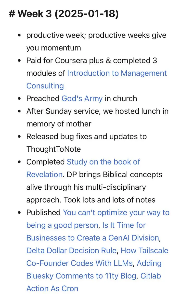 Week 3 notes: • Productive week • New release of t2n app • published 6 posts GenAI insight: • it is time to start a GenAI division in your company