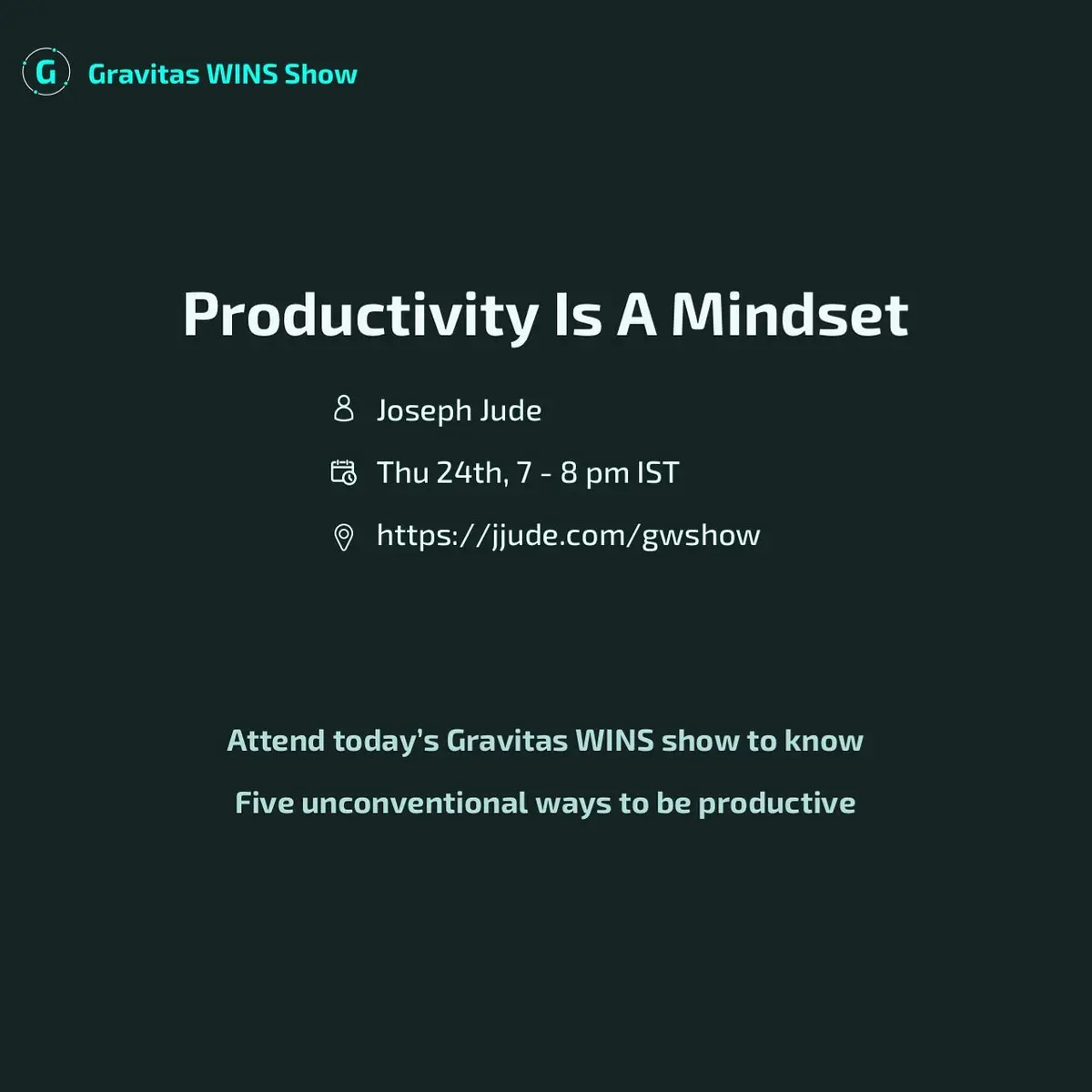 Productivity is not an occasional act; it is a permanent attitude. Learn unconventional ways to think about productivity in today’s Gravitas WINS show. Details on
