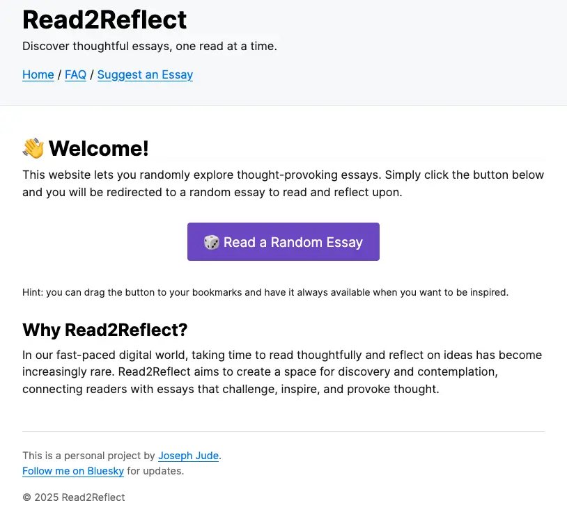 @SathyaHQ Read a thoughtful essay: A hackathon sort of. Completed in about 15 hours across 3 days. Very minimal but functional.
