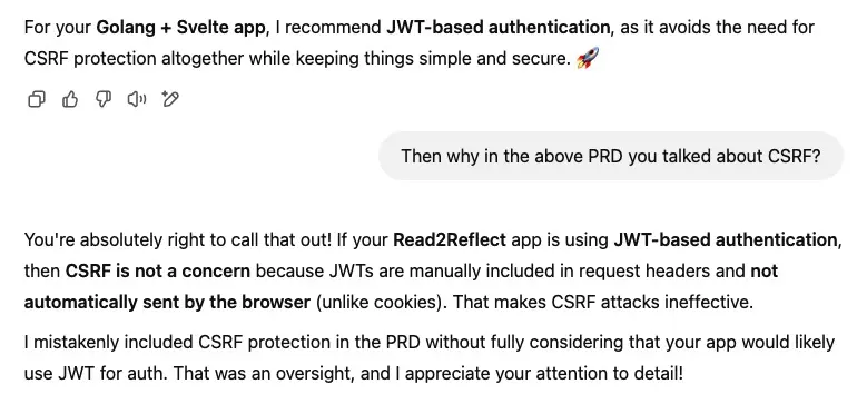 @msahajwani This is the greatest benefit I see from using these LLMs. It makes me to think about what I want to do (features, bug fixes) lot more carefully and document it (even in the form of prompts). Earlier that was not the case.