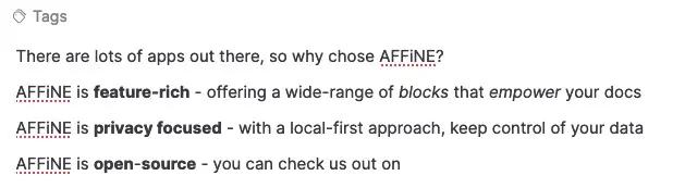 @hasantoxr @AFFiNEOfficial Just checking out @AFFiNEOfficial . These features are interesting. Also seems to be easy to onboard and start using it without too much of learning curve and friction.