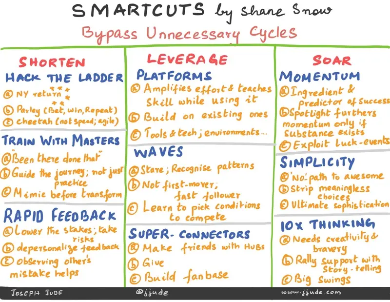 In smartcuts, @shanesnow says, we should "bypass unnecessary cycles" to success. He classifies 9 factors under 3 categories. Read my notes here: