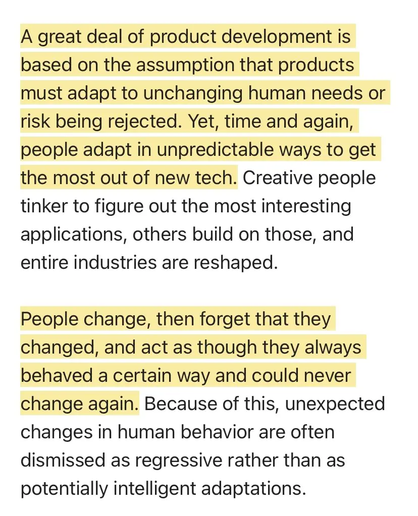 @benedictevans Remember what @pmarca said in another context. People get used to technology quickly and act as though they always behaved a certain way.