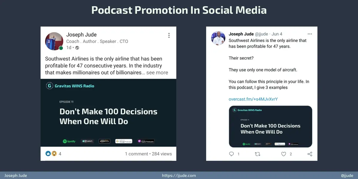How do I promote my podcasts? As like my blog, only friends and family listen to them (more friends than my family. Right @josephineejoyce😜) I share as whatsapp status, LinkedIn story, LinkedIn post, Twitter story, Tweet... Still early days to get good traffic.